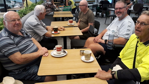 We meet at 10:00am on a Thursday outside the coffee shop at the local shops, usually one member gets there a bit early to claim a seat so that we usually sit in the same area, and other locals know us. We get coffee and sometimes sweet treats at the coffee shop, and then proceed to solve the world’s problems together.