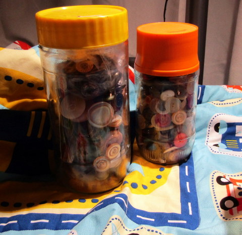 Back in the days before fast fashion and the consumer society, when clothing was valued, we used to use and re-use materials, throwing away as little as we could manage. In our house, when clothes became worn to the point when they were no longer usable, they would be destined for the rag bag, but any buttons were removed first and saved. This is analogous to the ‘Box o’ Bits’ in the garage, and allowed buttons in particular to be saved. This gave rise to the button jar.