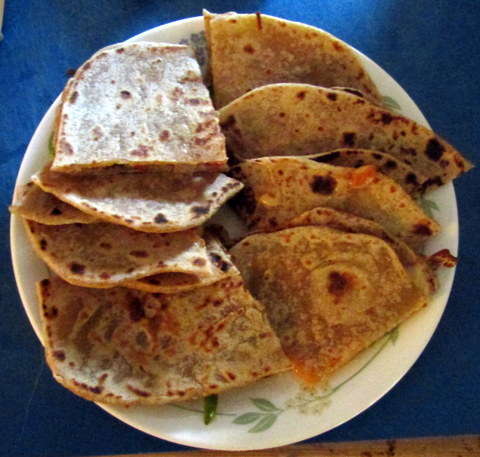 It is interesting to see how different cuisines achieve getting a variety of experiences from a similar set of ingredients, and I have been fooling around with the tortillas from Mexican cuisine to see what I could come up with. This recipe for anglo-quesadillas was the result of some that fooling around. We found them to be very tasty, but I do apologise to anybody out there who knows how to cook the real thing!