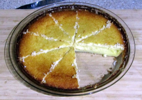 3. Pour the contents of the blender into the pie dish and bake at 180°C for 30 to 40 minutes, but keep checking after 30 minutes, until the coconut top is nicely browned.