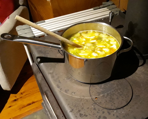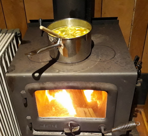 While, for the most part, we use the wood burning heater to cook up our winter soup, it would be just as easy to use a rocket stove if you’ve got one. This recipe also lends itself very well to cooking in the stored heat style of cooker, thus saving energy as well.