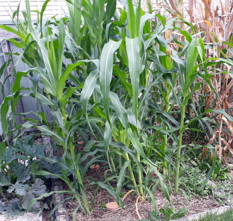While our system is based around a steady flow of fruit and veg rather than large gluts, there are some crops that doesn’t work for, and corn is one of them. Corn needs to be grown in a block to ensure that cobs are pollinated and you are not stuck with four or five kernels per cob. In previous years this has meant eating lots of corn when a crop comes due and then leaving some to dry out and provide seed for the next year, we grow open pollinated so we can plant our own seed from year to year.