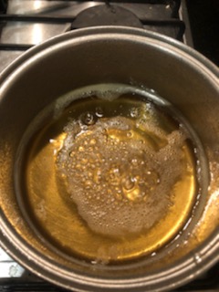 3. She then boiled the sugar and dandelion extract up for a period 30 minutes or until the mixture achieves a thick, honey like consistency, bearing in mind that it will thicken up some as it cools.