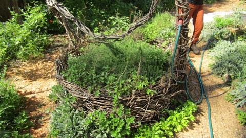 Cameron started working his magic making beautiful hot compost with the food scraps from the shop. We set up two small worm farms to provide us with castings and worm ‘wee,’ and got some mushroom compost to add instant organic matter to the soil.