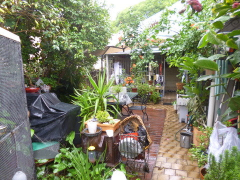 This little (approximately 350m2) oasis is located a couple of blocks away from two major roads near Parramatta in Western Sydney. There is no front yard, the front door opens directly onto the street, but Jo and her daughter Caitlin have managed to create their own productive Garden of Eden in their back yard. They do have issues with shade as there are a number of large trees which tower above their property but they have still a very productive and beautiful garden.