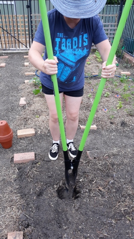 To turn the area into a productive veggie patch, the first trick was to remove the vinyl pool liner and the steel pool supports and shell steel sidewall. This was exactly as much fun as it sounds and took quite a while to accomplish fully. In the end they hired someone to remove the remaining rubbish from the pool, then fill it in to a certain level with rocks.
