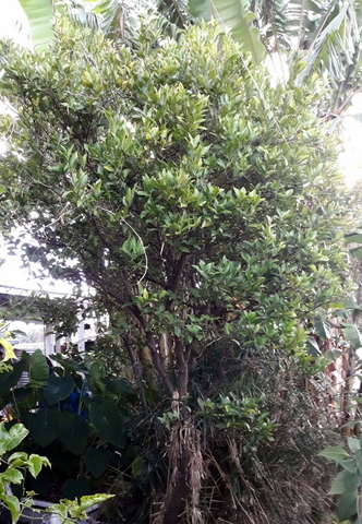 Mandarine/passionfruit – Remember the mandarine I set up north of the veggie patch I mentioned above? It is now growing a metre from the western wall of the house and just north of the banana circle. I dug it up and moved it by hand about 15 years ago, and while it was not happy with me for 12 months, it recovered and produces lots of really nice fruit most years. It does sometimes go into biennial bearing after a particularly prolific year, but everyone deserves a rest. The passionfruit (a seedling, not grafted) sits below my office window, climbs up and provides shade, and then shows its affection for the mandarine tree, again, fruiting when it feels like it.