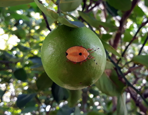 The main problem we tend to get is bronze orange bug on the citrus and in a bad year they can be in plague proportions and really kick the living daylights out of the citrus. I hand pick and drown them. I have found that if you get stuck into them early in the spring and keep on top of the numbers it will make life easy (for me, not them!).