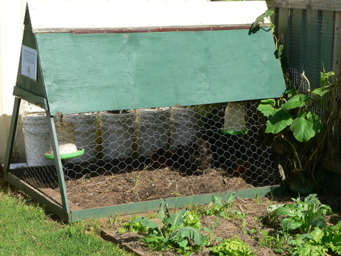 - It would allow me to make the best use of the chook poop by having the chooks directly apply said poop to each veggie patch in turn,