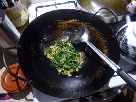 - Sautéed Leaves – heat some oil in a large pan or wok to medium heat, then add the leaves in batches and stir gently until they are all in the pan.