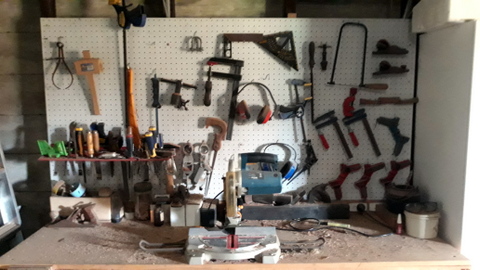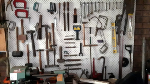 Tool storage - . It has allowed me to store and use my considerable collection of hand tools as well as a place to use them. It is also a place to set up and use larger power tools such as the wood lathe, bench drill, table saw, router, small band saw, drop saw, grinder and electric welder. I also had a (large) homemade press and a pipe bender but I needed room and realised I hadn’t used either for over 30 years so I donated them to a high school my mate John was teaching at.