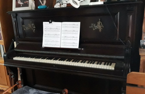 I am not musical (just putting that out there)! However, Linda is, and years ago I was able to get her an upright piano. She practices regularly when she has time and is getting quite good at it. Unfortunately, while the piano had a place for candle sconces to go on the front to allow playing by candlelight, it was not fitted with them when we bought it. A few years later I was able to find a pair which fit in an antique place in Windsor so it is now complete. The only place where the piano would fit, of course, was the dining room so it also doubles as our music room!