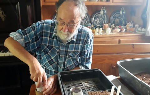 Yup, even with a garage and greenhouse, I find it easier to sow the seeds into punnets and pot the seedling on into newspaper pots, which I do every two weeks, on the dining room table. It is more comfortable and certainly warmer/cooler than working outside, depending on the time of year. I bring the seed raising mix and some 8-cell punnets in from the greenhouse and the seeds down from my office and sow them all according to my sowing plan. After that I lay out and cut the paper and then form the strips into newspaper pots for potting on. I then fill them with seed raising mix and pot last fortnight’s seedlings on into them at the dining room table. It is then a simple matter to take the filled punnets and newspaper pots back out to the greenhouse to continue growing.