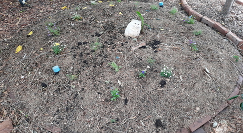 So I went for a recce and found that I was able to get hold of the cosmos, alyssum, viola and lobelia quickly. Which I did and then proceeded to plant them out into the shady mound.
