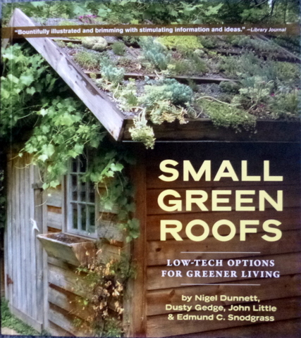 Small Green Roofs – Nigel Dunnet, Dusty Gedge, John Little and Edmund Snodgrass – Timber Press Inc (US/UK) 2011 ISBN 978 1 60469 059 0 – The book commences with an introduction on what a green roof is and what the benefits of having one are, then covers how to build one. There is also some detail on how to plant one out eg using veg and herbs, styles of planting, how to establish and maintain plants on a green roof. There are also a series of sections on projects where green roofs were put in place and how they were done. Lots of colour photos.