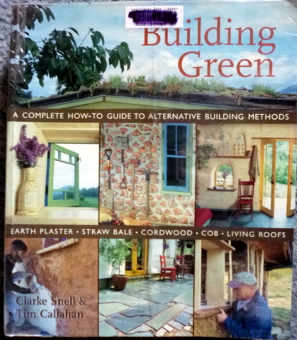 Building Green – Clark Snell & Tim Callahan – Lark Books (US) 2005 ISBN 978 1 57990 532 3 – This huge book (600+ pages) has been written around earth plaster, straw bale, cordwood and cob construction materials and living roofs. The book starts with building fundamentals and why one should build “green” and then goes on to discuss design, siting and site work and putting the site structure together. The next section details the processes for building with cob and other earth mixes, cordwood and strawbale. Lots of alternative methods for covering the walls, the roof and the floors are also discussed. There are lots and lots of colour photos with the odd diagram and line drawing.