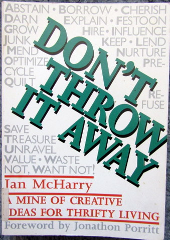 Don’t Throw it Away – Jan McHarry – Gaia Books Ltd (UK) 1993 ISBN 978 0 7318 0303 5 – An oldie but goodie, which focuses on re-use and recycling of waste. The first part of the book covers ideas and actions at the household (including refill, re-use, repair) and national level including recycling processes and reducing waste. Part 2 is a trip around the world and the recycling practices of 25 countries/continents (Africa is treated as a whole) and what happens to their waste (this bit is probably a bit dated). Part 3 is a recyclers A to Z covering over 100 alphabetised wastes and facts about the waste stream, and what can be done at a personal level to reuse, repair, recycle. A couple of line drawings.
