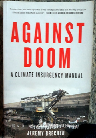 Against Doom (A Climate Insurgency Manual) – Jeremy Brecher – PM Press (US) 2017 ISBN 78 1 62963 385 5 – Also a very US-centric book, it is divided into 2 parts – part 1 being the first 5th of the book and covering the global climate insurgency, part two (the next 4/5ths of the book) covering the climate insurgency in America. There are parts of the book which can be applied elsewhere. The book discusses strategy; imposing fossil freeze and climate action plans; working with the public; undermining the pillars of support for climate destruction and concludes with two brief scenarios: Doom or Fossil free.
