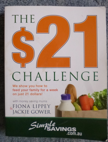 The $21 Challenge – Fiona Lippey & Jackie Gower – Simple Savings International P/L (AUS) 2009 ISBN 978 0 9806533 0 4 – They have developed a process whereby you use the stuff you have in your cupboards and can only spend $21 per week of new stuff, the idea being that it helps you focus on the important stuff while saving heaps of money. Lots of good cheap recipes as well as a section on using up excess/leftovers effectively. They have a website about the process - http://www.simplesavings.com.au/