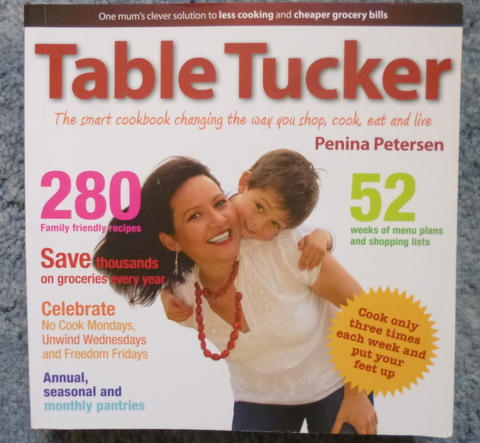 Table Tucker – Penina Petersen – Hachette Australia (AUS) 2009 ISBN 978 0 7336 2444 5 – This is another “system” but is very environmentally friendly in its approach. The principles are cooking with seasonal ingredients, grow your own veggies, bulk buying, shift old habits and eat less meat, reduce waste, water and energy consumption and embrace earth happy ideas. LOTS of good info on menu planning and lots of good recipes. They also had a website but it no longer seems to be active.