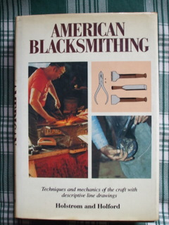 American Blacksmithing – J. G. Holmstrom – Greenwich House (US) 1982 ISBN 0 517 390 485 – This also appears to be a reproduction of an older work, although there is no data about the original publishing. It covers a lot of old stuff including horse shoeing, carriage and wagon building and stuff on boilers. There is also quite a bit on tools and toolmaking but generally this is not a book for the novice.