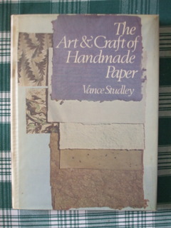 The Art and Craft of Handmade Paper – Vance Studley – Studio Vista (UK) 1977 ISBN 0 289 70846 X – The first 30 pages of this book cover the history of papermaking but it soon moves on to the equipment required and how to do it, with lots of detail on preparing the fibre. The papermaking process is covered by black and white photos and then there are some projects in the back of a somewhat arty nature.