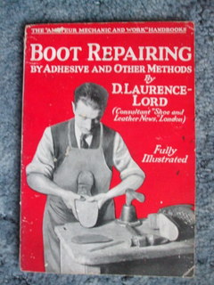 Boot Repairing – D. Laurence-Lord – Cassells Publishers (UK) 1929 (No ISBN) Another oldie-but-goodie which has lots of information on shoe and boot repair but only a few line drawings and no photos. There is some assumption of knowledge by the author with this book and the descriptions can be a bit confusing without pictures but still good information in a small book.