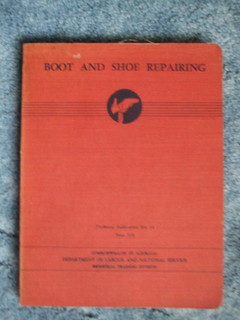 Boot and Shoe Repairing – Technical publication no 38 – Commonwealth of Australia – No date or ISBN – This is a textbook of shoe repair , probably from the 1950s or so, the pages are only printed on one side and the text is typed with some line drawings. Its lack of production values is made up for by the detailed information it contains. It covers all about the tools and raw material, machine and hand repairing, using adhesives, repairs to particular types of footwear and simple remedial alterations. Fascinating!
