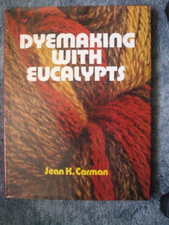 Dyemaking with Eucalypts – Jean K. Carman – Rigby (AUS) 1978 ISBN 0 7270 0648 7 – The majority of this book is taken up with listings of eucalypts by (Australian) state and including Papua New Guinea, by Latin and common names, rough areas where they grow and what colour thy produce with what mordant. There is only about half a dozen pages on the process of dyeing itself and about the same number of full colour plates. A handy reference.