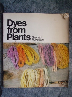 Dyes from Plants – Seonaid Robertson – Van Nostrand Reinhold (US) 1973 ISBN 0 442 26975 7 – This is a very comprehensive book, introducing dyeing, discussing then use of mordants and providing monographs on a whole range of plant dyes including using the dyes of historical importance. The dyeing of cotton, linen and silk has its own chapter as does the planting of a dye garden. There is also a section on using the dyed thread and yarn. There are a couple of colour and black and white photos, but lots of line drawings to illustrate what the plants look like.