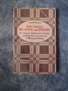 Natural Dyes and Home Dyeing – Rita J. Adrosko- Dover Publications Inc. (US) 1971 ISBN 0 486 22688 3 – The first half of the book covers the historical context of a wide range of natural dyes and their use in the US, interesting but not much practical use. The second half provides dye recipes and processes for home dyeing using some of the materials discussed previously. A couple of colour photos dyed swatches and the odd line drawing but not much in the way of illustrations all up.