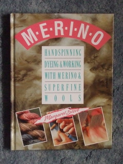 Handspinning, Dyeing and Working with Merino Superfine wools – Margaret Stove – Kangaroo Press (AUS) 1991 ISBN 0 86417 353 9 – This is a glossy book with lots of black and white photos and line drawings on the spinning process. The book covers preparation, techniques for spinning singles, wheel adjustments and spinning from the tip, how much twist to put in and dyeing and using merino with other fibres.