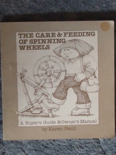 The Care and Feeding of Spinning Wheels – Karen Pauli – Interweave Press (US) 1981 ISBN 0 934026 04 1 – This book is part buyers guide, part owner’s manual so if you can already spin and have a wheel, or are in the market for one, this is a good book. The book goes into some detail on the type of wheels available, what to look for in one that works, what DIY repairs you can carry out and when to consult a professional. There are a couple of pages on making a wheel yourself, but not huge amounts of detail although the sketches are good, and some stuff on problem solving and maintenance. No photos but some line drawings.