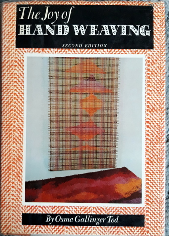 The Joy of Handweaving (2nd Ed.) – Osma Gallinger Todd – Bonanza Books (US) 1964 ISBN 978 0 517104 57 6 – This is quite a large book at over 300 pages and is composed of 41 short chapters. The first three are an introduction to threads and weaving, chapters 4 to 7 cover a first weaving lesson around weaving a bookmark. Chapters 8 to 13 cover various miscellaneous bits like weaving a rug on a frame, Indian weaving, weaving a table mat or rug and colour/colour combinations. Chapters 14 to 24 cover setting up and weaving on a two-harness table loom, including making one! Chapter 25 to 35 covers various weaving techniques including plain, twill, overshot and diamond. Chapter 36 covers colour; 37 covers planning borders; 38 various draft notations; 39 thread sizes, counts and yardage; 40 is a web chart of warp settings and suitable wefts, and how to use it and Chapter 41 describes some practical projects for hand woven fabrics. The book has lots of line drawings and B&W photos plus a series of colour plates towards the back.