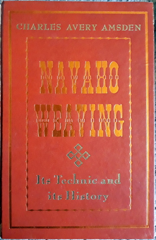 Navajo Weaving: its Technic and its History – Charles Avery Amsden – The Rio Grande Press Inc. (US) 1934 (this printing 1974) ISBN 978 1 16451 078 9 – This is book is over 200 pages long. Part 1 – the technique of Navajo weaving: chapter one covers finger weaving, chapter two, loom development in America and chapter three covers the Navajo loom, chapter four covers the weaves of the Navajo, chapter five covers development of native dyes and chapter six covers methods and formulae for native dyeing. Chapter seven covers the types and uses for Navajo textiles. Part 2 – The history of Navajo weaving: Chapter eight covers The first sheep (!); chapter nine covers early Navajo weaving; Chapter ten covers Bayeta 1800 to 1863(?); Chapter eleven cover the taming of the Navajo 1863 to 1868 Chapter twelve covers Blanket to rug, the transition period 1870 to 1890; Chapter thirteen covers the rug business 1890 to 1932; Chapter fourteen covers the growth of design 1800 to 1920 and chapter fifteen covers the revival, 1920 to the present. The book has quite a number of B&W photos and two colour fold-outs at the front of the book.