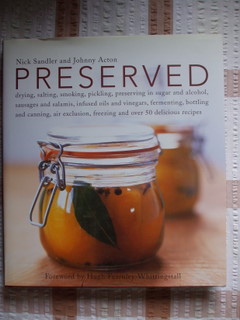 Preserved – Nick Sandler and Johnny Acton – Kyle Cathie Ltd (UK) 2004 ISBN 1 85626 532 3 – The book covers a broad range of techniques with a few recipes using each of the products. The large format and colour pictures give it a coffee table feel but there is also a lot of good information here. The book covers drying, salting, smoking, sausages, pickles, infused oils and vinegars, fermenting, preserving with sugar, alcohol, bottling and canning, air exclusion and freezing.