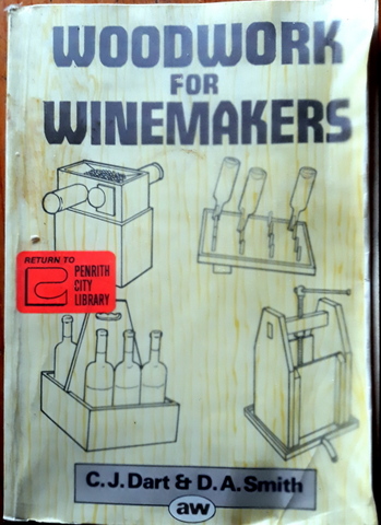 Woodwork for Winemakers – C.J. Dart & D.A. Smith – The Amateur Winemaker Publications (UK) 1985 ISBN 0 900841 17 6 – This is obviously not so much about winemaking as building stuff to help you winemake better! Chapter one is a quick discussion on materials and methods like dowelling, glues, timber and techniques like glue and pin and glue and screw. Chapter 2 – preparation – covers projects like a fruit pulper, a small press and small weighing balance; Chapter 3 – Fermentation - has plans for stirrers, a pulp squeezer, various fermentation cupboards and a trolley; Chapter 4 – After fermentation – covers plans for a racking and straining stand, bottle corking holder and a cork flogger. Chapter 5 - Storing and serving - has plans for various bottle racks, several jar dispensers and a mobile bar. Chapter 6 – shed winery – talks about and has plans for the site, base, insulation required, electricity, work bench and general layout. Chapter 7 – Miscellaneous – has plans for a malt grain crusher, winemakers cupboard and record card index box, among other things. Lots of plan line drawings and a few black and white photos.