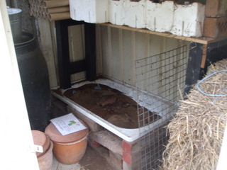 When we make our own seed raising/potting mix one of the key ingredients is worm castings so we needed a nice big wormery to take care of our veggie waste, treat the stuff that comes out of the home made bokashi bin and provide loooooots of castings. I converted an old bath to a worm farm and it works pretty well, a blow-by-blow account of how I did it is in the “Livestock” section of the site. It gets damn hot out here in summer so the wormery also needed to be protected from the elements so I built it in the second shed. This shed also provides storage for the straw bales for mulch, a set up for growing mushrooms which is not in use at the moment and the pot in pot coolers (out of the sun but good ventilation).