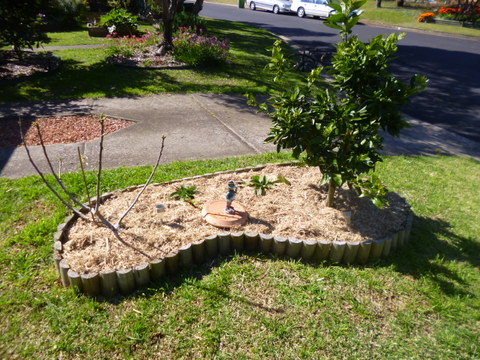 The fruit tree circle is still in place and doing very well, but the red current bushes in the inner circle did not survive, I suspect the western Sydney summer was just too much for them. A new feature of this circle is the worm tower installed in the centre of the circle to provide nutrition for the trees which they can harvest themselves by stretching out their roots.
