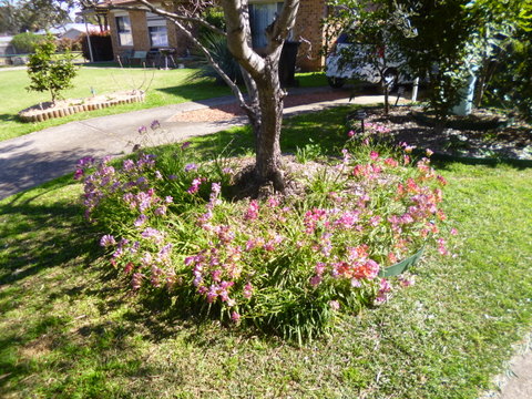 The olive tree is still there but waiting some research as it has not been very productive of late. The edible flowers (mostly freesias) planted below it come up every year and look stunning. There has also been an addition of comfrey and white clover to assist with providing nutrition for the olive tree and a couple of strawberries for more fruit.