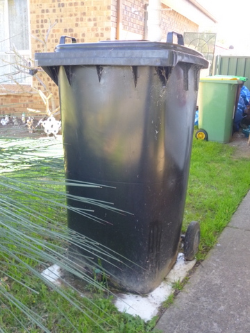 A while back we put in a carport to protect our little beast from the weather, there being too much crap in the garage for it to be parked inside. In usual fashion, the guys who built it put in a gutter and downpipe, but the downpipe just emptied onto the lawn. To make use of this water I converted a wheelie bin purchased for another project (but unused) into a small water reservoir. The water stored in it is usually used on the fruit tree circle or small fruit bed. For construction details click here.