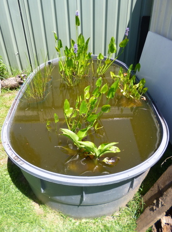 I did a back-of-an-envelope calculation and discovered that the set up would increase my electricity consumption by 40% so while the fish protein would be a good addition to our diet I was not prepared to pay the energy cost. The system has been decommissioned with the bathtub grow beds being pressed into service in a constructed wetland (see below) and the fish tank converted into a new productive water garden (also see below).