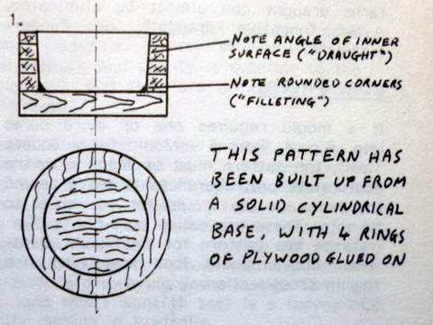 The trick lies in building up the pattern, using simple shapes (wooden blocks, cylinders, sheets etc.) to construct a more complex shape. Figure 1 shows a simple example of a ‘flat-base’ pattern, using a cylindrical pine base and plywood rings.