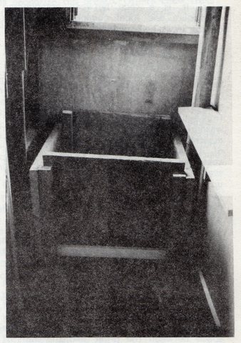 I chose to build a bench from second hand hardwood. All up, including bolts and screws it cost under $40 (1980s pricing!). The photo shows more-or-less what it looks like. It appears distorted because I used a wide angle lens, the only way to get a full view in a small space. The short shelf in the middle and the longer one at the bottom are optional, and certainly sturdier than necessary (2 inches thick!) I was going to make the bench three plants wide but decided two were sufficient, so I didn’t want to waste what was left.