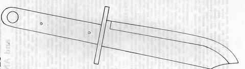 Please note theat in the original book, there was a full scale diagram of the suggested knife shape to the right of the text. This has been reproduced in smaller form at the end of the article, but the original sized full scale drawing can be downloaded here (Knife shape PDF)f or use as a template.