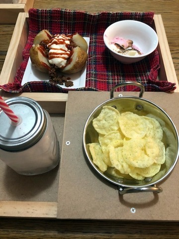 The idea is that the tray has 3, for want of a better term, compartments. There is a compartment on the lower left hand side which has a cover with a hole set into it to support a snack bowl, there is a compartment immediately above it which holds one or two glass mugs for drinks, with screw on lids which hold a straw. The mugs are used because they have a flat bottom and so are stable, but the lid and straw combo minimises the risk of spillage if they get tipped over, important for the kids! The largest compartment is designed to hold plates or whatever with the main snack load on them.