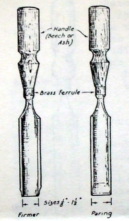 Up until recently the most common and widely used chisel was the firmer chisel, it is a solid (sometimes almost “block”) chisel. It had no ornaments or fine lines, but it did cut wood! For almost all day-to-day requirements it performed in a fine fashion.  While it was designed for most of the normal jobs it did not have a fine blade for paring, nor an extremely heavy blade for the very heavy jobs sometimes encountered.