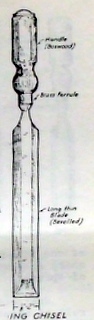 The paring chisel is what might be considered as the extreme version of the bevelled edge chisel. Usually only found in specialised tool shops or as a “deceased estate” , they are both specialised and very useful – but only for light paring work. The original intention was for a chisel that would cut a clean cut across wood up to about 250mm wide. They should never be used with a mallet, as one glance at the ornamental handle will show.