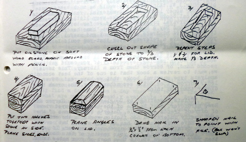 All stones should be protected when not in use. A special box is best suited to this purpose. The traditional oilstone box is made from a piece of scrap timber, as shown below. With my oilstones I’ve marked the end of the boxes A and B. I make it a policy to alternate the ends each time I use the stone in an effort to keep the stone as flat as possible.