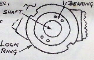 With the cranks off you can now get access to the bearing. You will find that only one side is removable. Also, the bearing differs slightly in that it doesn’t use cones, instead an adjustable ball race is locked in position with a locking ring (it is almost the cone system in reverse). The locking ring has slots milled in the edge for tightening and removal. There is a special half moon spanner made for just this nut. Either buy the correct spanner or make up a tool as shown. Lazy people don’t bother with the correct tools and use drifts; this in turn damages the slots. Do the right thing and get the proper tool now, while such tools are readily available at reasonable prices. Making your own spanner isn’t a bad idea as it will give you practice and saves a bit of money as well. Either way, having the correct tools will stand you in good stead and could give you a ready source of income in the coming bad times. No matter how bad things get, many people will still be ready to pay good money for a job well done and you could be setting yourself up for a future business when earning money won’t be so easy.